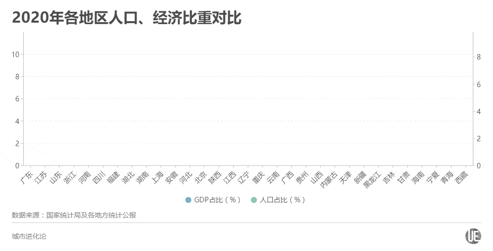 城叔做了一个对比,以31个省区市2020年的经济数据和人口数据看,有广东、江苏、山东、浙江、福建、湖北、上海、北京、重庆、内蒙古、天津10个省份的经济总量占比大于(等于)人口总量占比。