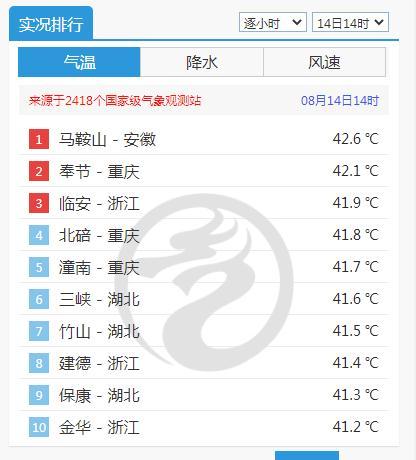 其中马鞍山最高气温达到42.7℃