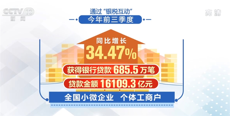 国家税务总局数据显示,通过“银税互动”,今年前三季度,全国小微企业、个体工商户获得银行贷款685.5万笔,贷款金额16109.3亿元,同比增长34.47%