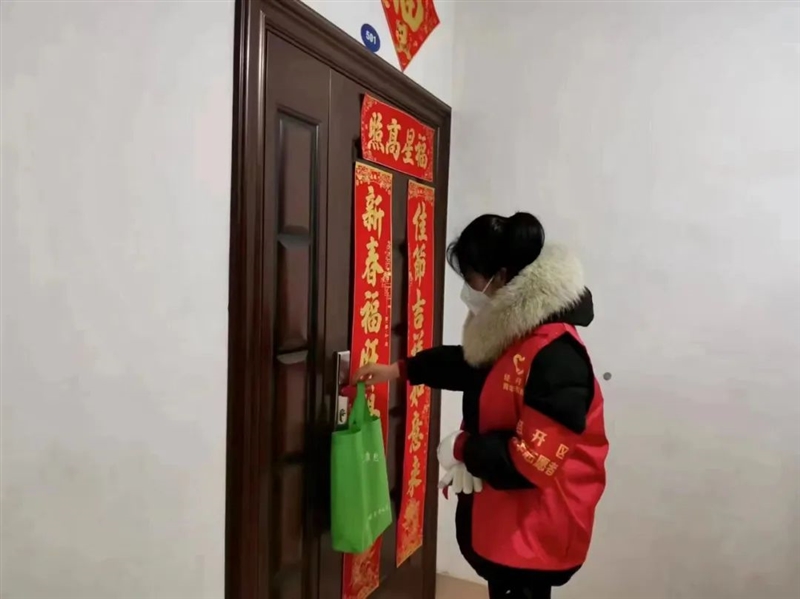 社区小管家化身志愿者派送“爱心健康包”。程丹 摄