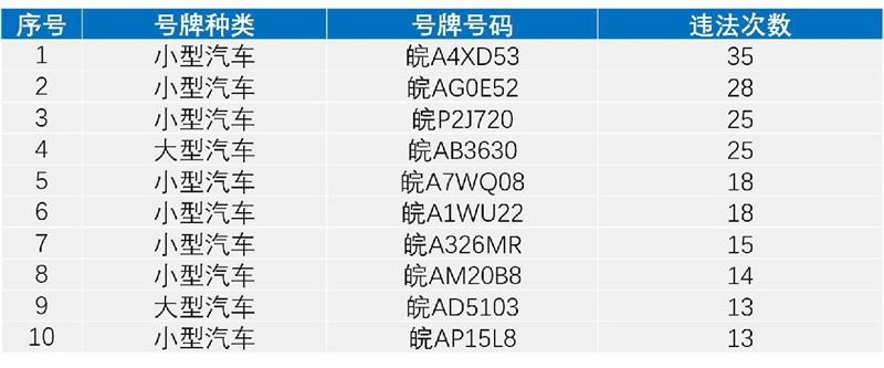 非现场处罚违法车辆TOP10