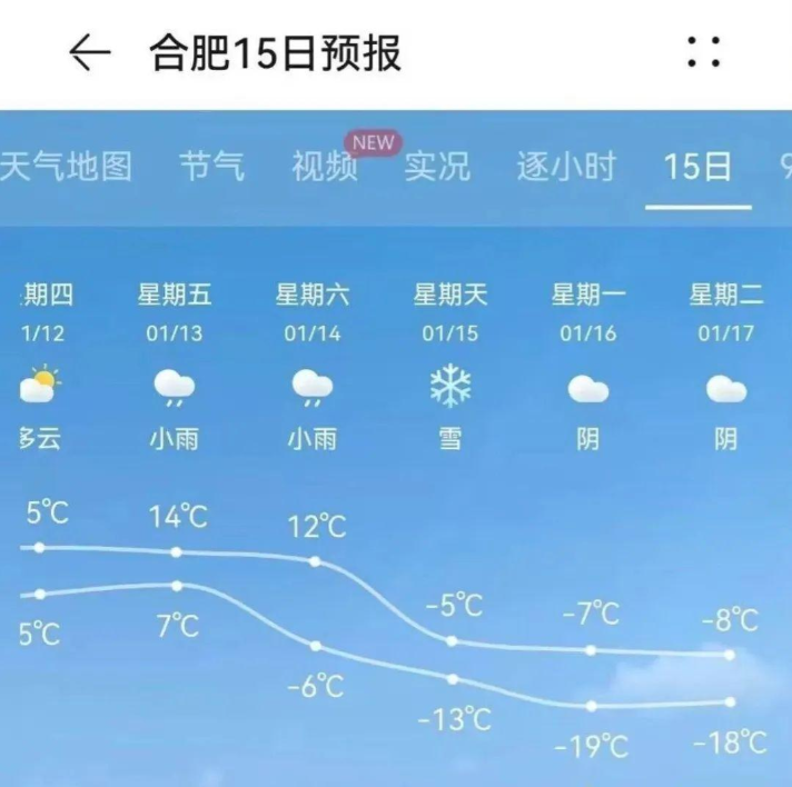 是真是假?天气软件报出合肥极端寒冷,过年前要大暖转大冷吗