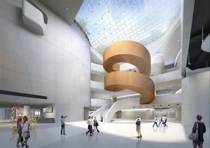 设计以四个巨大的卷曲“筒形”作为内部空间的构成要素。通过错层分隔,使合肥美术馆拥有多个大空间展厅。展厅数量共10个。其中大展厅3个,小展厅6个,临时展厅1个。最大展厅面积达到1253平方米。项目将重点建设2个恒温恒湿展厅,建成后可具备展览珍稀名贵书画作品的功能。