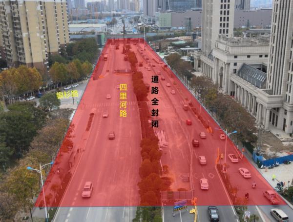 四里河路(银杉路-潜山路)地面道路全封闭,封闭时间230天。同时,封闭四里河路(潜山路以南100米范围)两侧人行道、非机动车道及部分快车道,封闭时间53天。