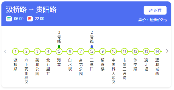 大交路中贵阳路站至包河苑站行车间隔9分50秒;