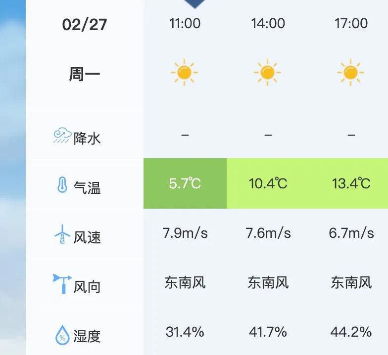 据中央气象台刚刚发布的预报,明天上午11点,省会合肥市相对湿度仅为31.4%,下午2点将缓慢攀升至41.7%。