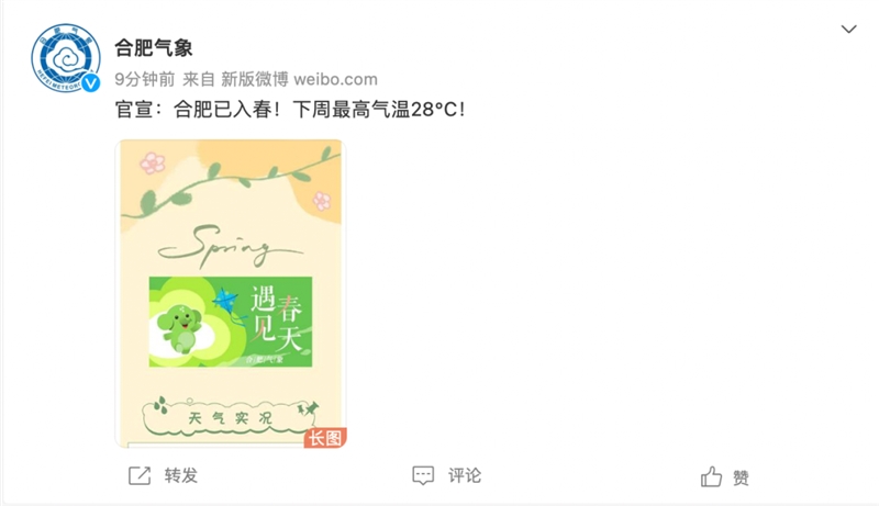 刚刚从气象部门获悉,根据相关标准,3月4日起,合肥市正式进入气象学意义上的春季。